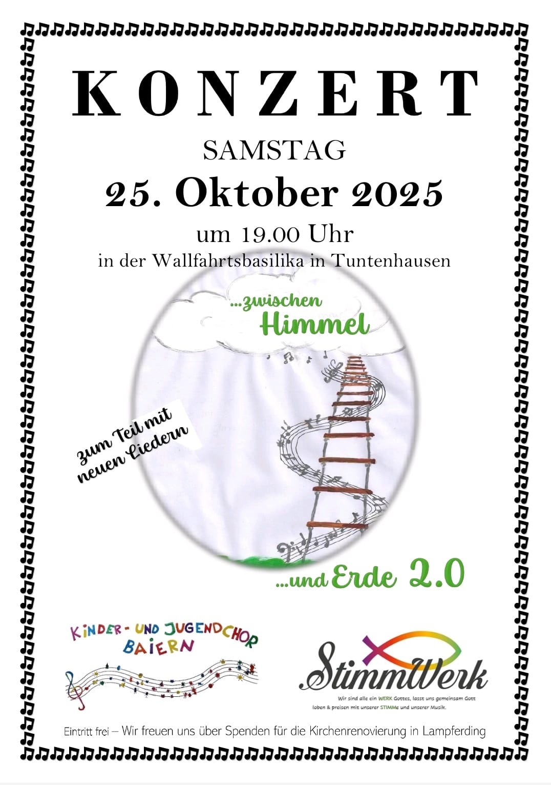 Sa | 25.10.2025 | 19:00 | Konzert "Zwischen Himmel und Erde 2.0" zusammen mit dem Kinder- und Jugendchor in der Wallfahrtsbasilika in Tuntenhausen |